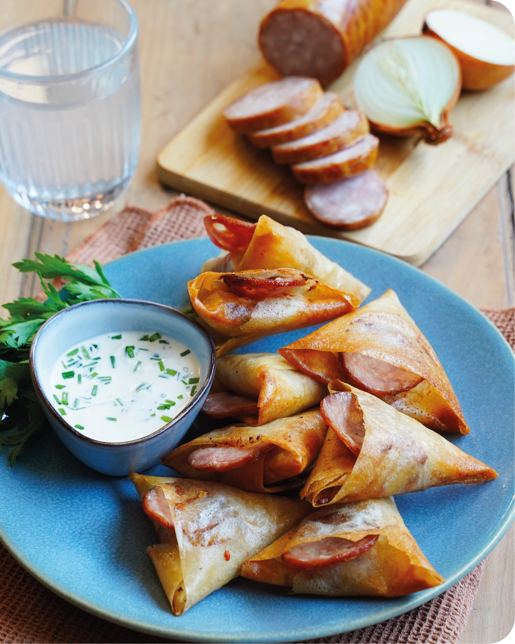 Tartelettes de pommes de terre, chèvre et saucisse de Montbéliard